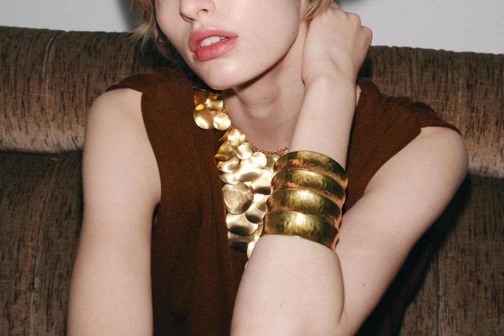 Ak túžite do aktuálneho trendu preniknúť postupne, siahnite iba po jednom robustnom kovovom náramku a skombinujte ho s inak čistými líniami a neutrálnou paletou. Biele košele, béžové topy bez rukávov alebo hodvábne slip šaty vytvoria ideálny kontrast. Náramok vďaka tomu bude hlavným prvkom outfitu. Tento spôsob nosenia pôsobí moderne, sebavedomo a zároveň neodolateľne chic.