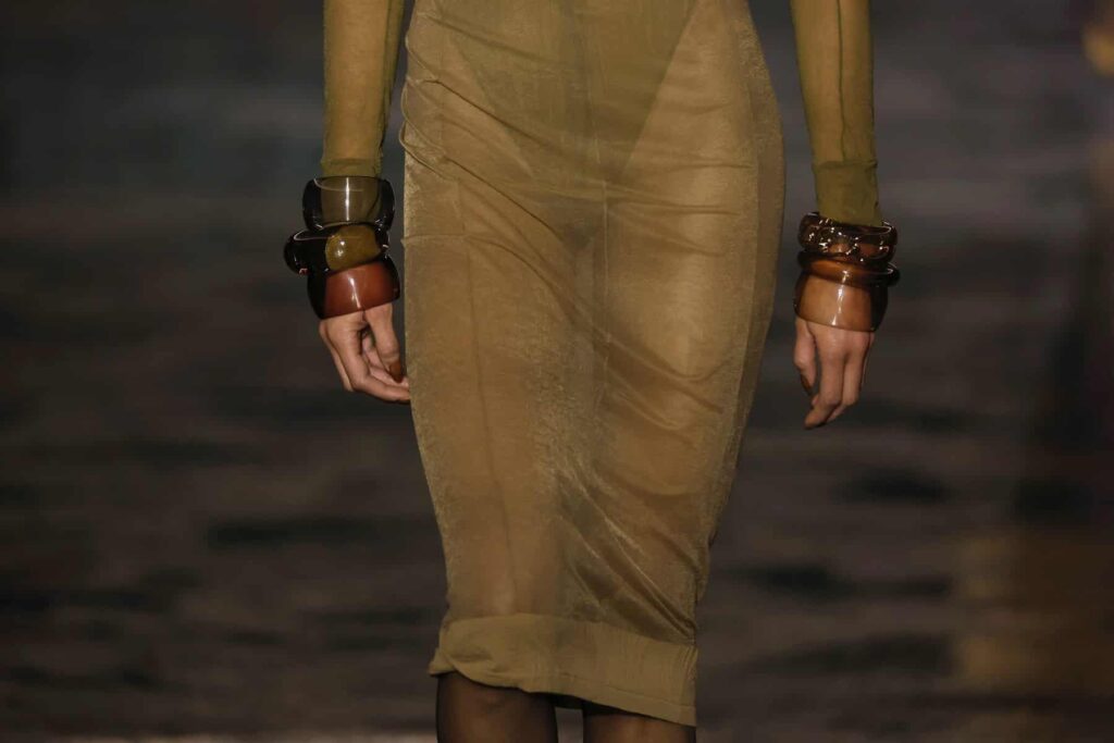 Priehľadné prvky vládnu módnemu svetu už niekoľko rokov. Zakaždým sa však na scénu vracajú v inej podobe. Posledných niekoľko sezón dobývajú prehliadkové móla najmä v podobe priehľadných sukní. Známe módne domy si ich obľúbili už v kolekciách, ktoré pripravili na uplynulú jeseň a trvajúcu zimu. Do svojej prehliadky ich zaradil aj Saint Laurent, a to v podobe elegantných plášťových sukní s vysokým pásom.
