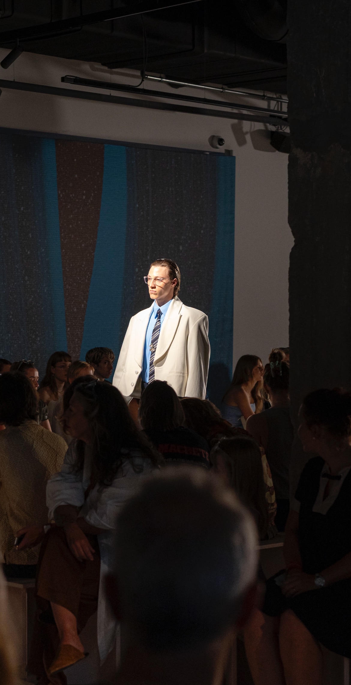 Úprimne povedané, napätie som necítil. Kolekcie ostatných dizajnérov boli úplne odlišné. Často vyzerali viac, dovolím si povedať, dosť „východne“. Moja estetika je viac minimalistická a práve v tejto jednoduchosti nachádzam silu. Na prehliadke som si uvedomil, že mužnosť môže vyzerať veľmi odlišne aj v rámci strednej Európy. S návrhmi som bol spokojný a mal som pocit, že si držím vlastnú líniu. Necítil som teda pocit spolupatričnosti alebo nejakého napätia. Ako sa hovorí, robil som si svoje vlastné veci.